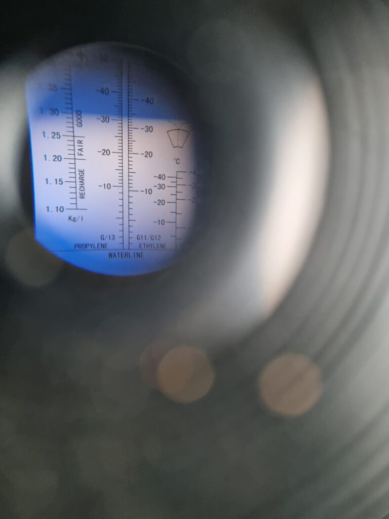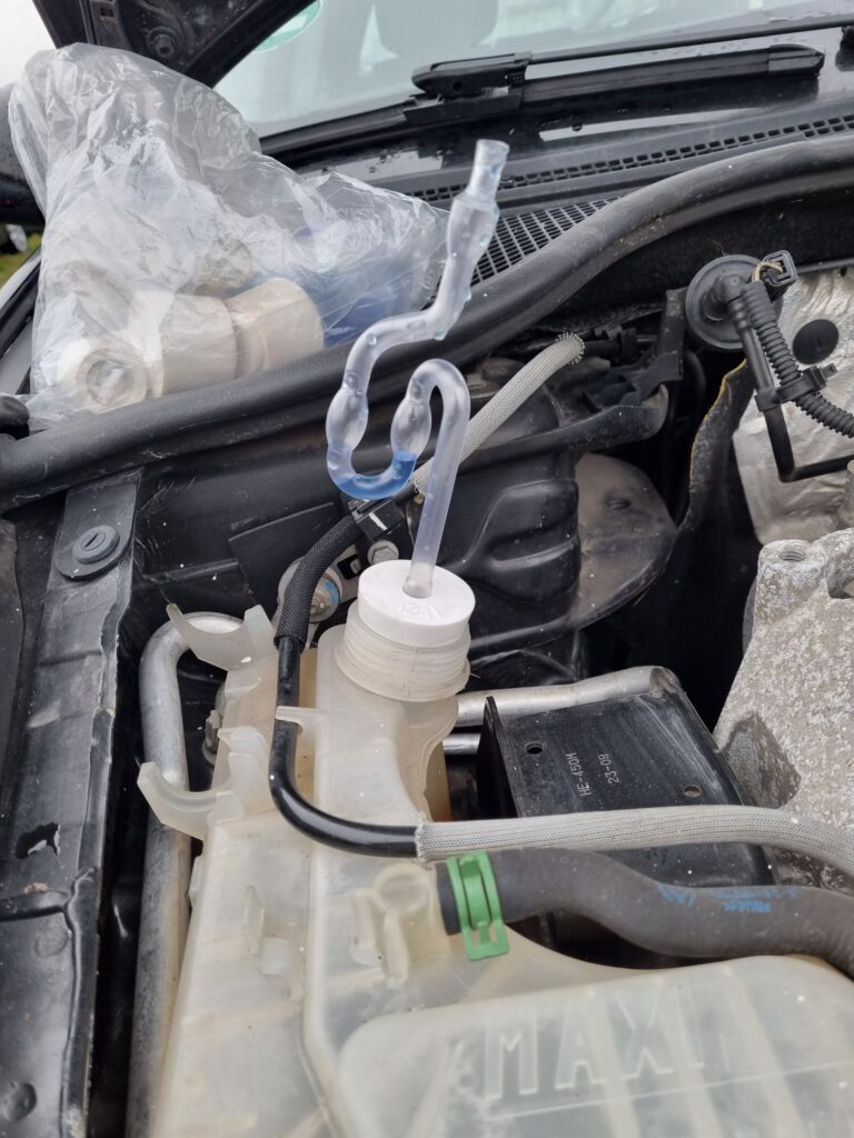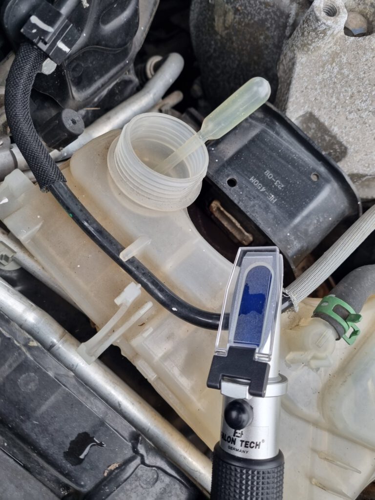 – test szczelności głowicy i uszczelki pod głowicą wypadł pozytywnie tzn. płyn reakcyjny nie zmienił barwy z niebieskiej na żółtą bądź zieloną co oznaczałoby przedostawanie się części gazów spalinowych zawierających m.in. CO2 do układu chłodzenia.