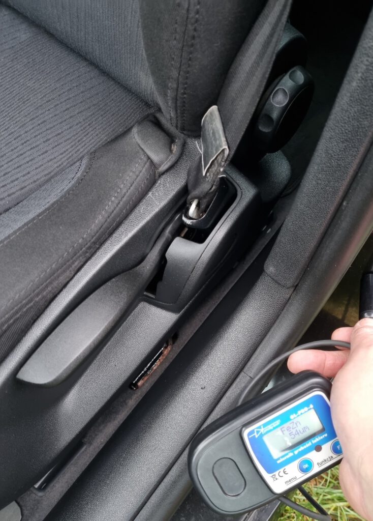 Niestety wymieniany był pas bezpieczeństwa przedni pasażera, a „naprawiacza” zdradziła tutaj metka z datą produkcji pasa z 2018 roku. Ciekawe z jakiego modelu Renault pas został użyty skoro produkcję Laguny zakończono w 2015.