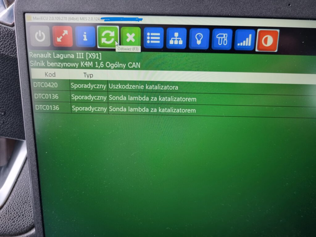 Ponadto co do silnika to w jego sterowniku widoczny był błąd uszkodzenia katalizatora i sondy lambda