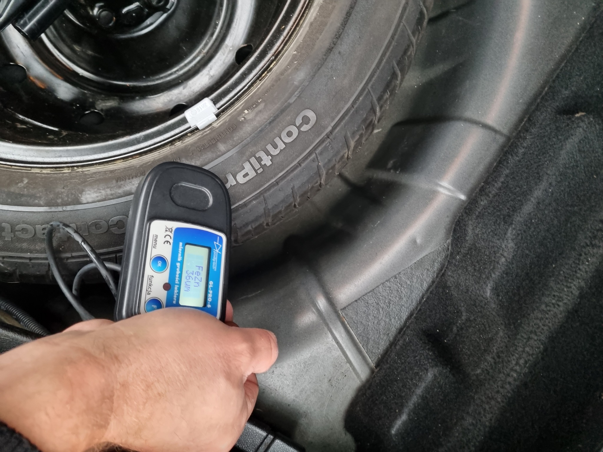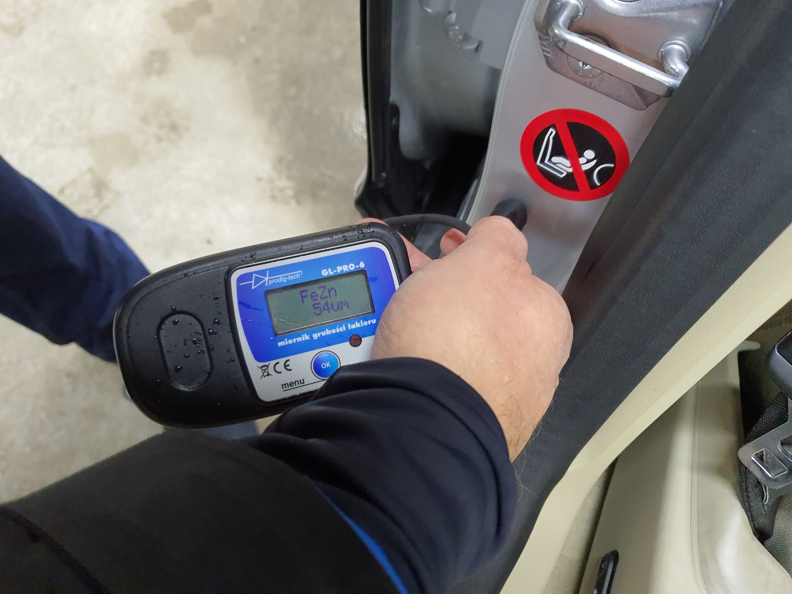 Oględziny blacharsko-lakiernicze oraz pomiary grubości lakieru ( w tym aluminium, cynku i żelaza) miernikiem GL Pro6 wykazały ślady ponownego lakierowania oraz szpachlowania kilku elementów nadwozia. Z profesjonalnego ponownego lakierowania nie wolno robić afery, ale w tym aucie niepokojące były ślady napraw blacharsko-lakierniczych na słupkach i progach prawej strony auta, gdzie miernik wskazywał do 250 mikronów (ponowny lakier) i do 550 mikronów (użycie szpachli) (fabryczne wartości w tych miejscach to ok. 40-60).